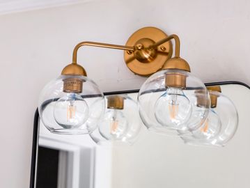 Brighten your bathroom with beautiful lighting fixtures and stylish mirrors that enhance the overall design and functionality.
